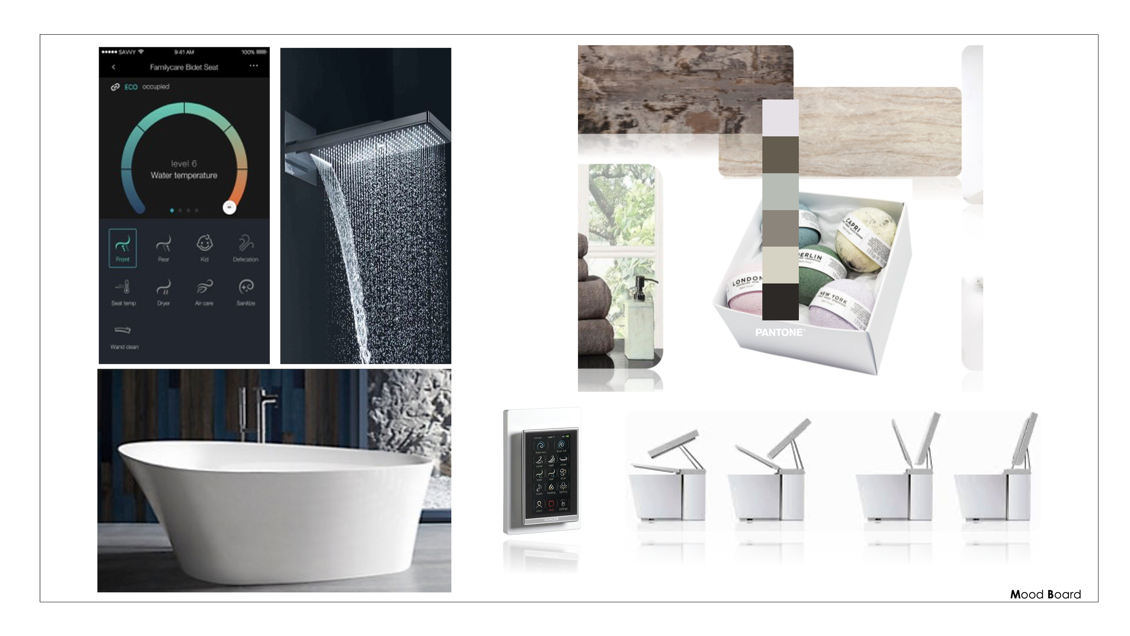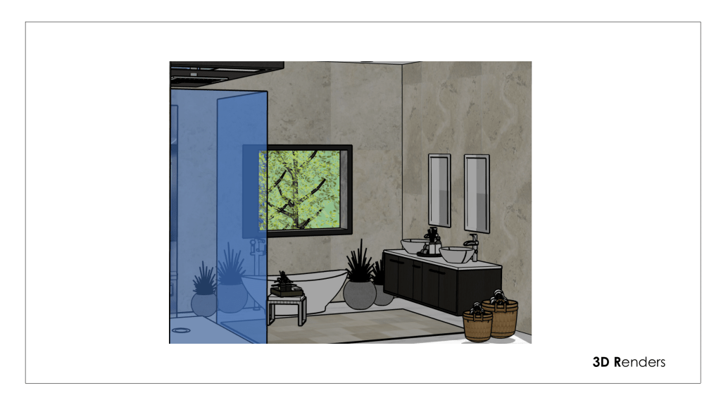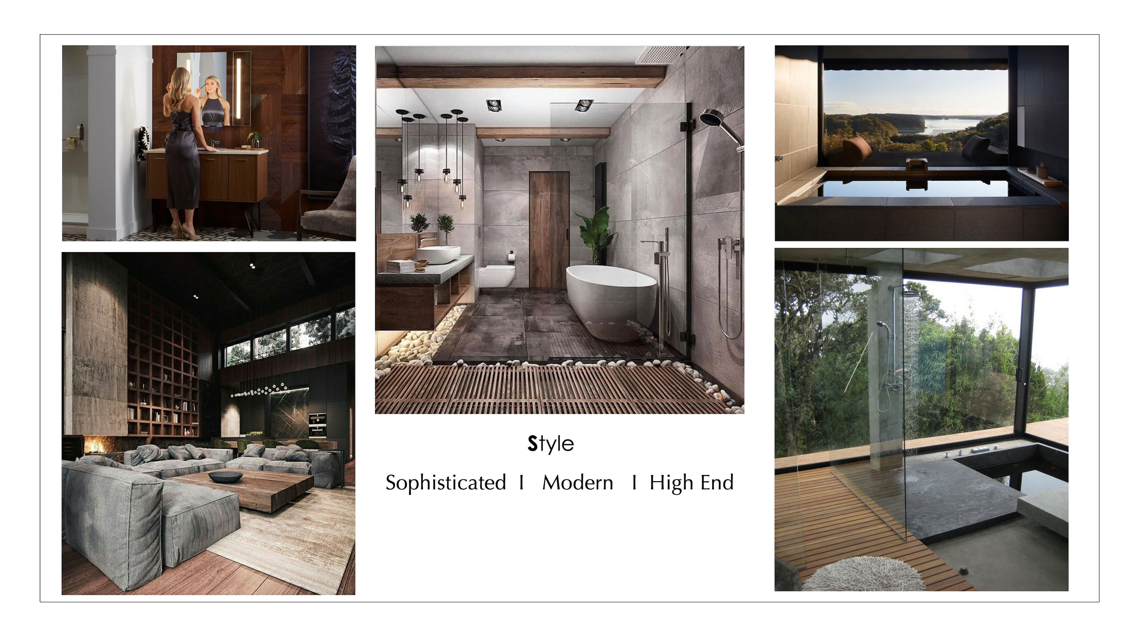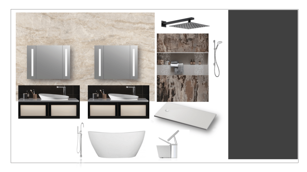 Para este proyecto el diseño del baño se define simplemente por su apariencia: líneas rectas y limpias, espacios de encimera despejados y formas geométricas; donde la nueva tecnología juega un papel importante en el proceso de diseño.